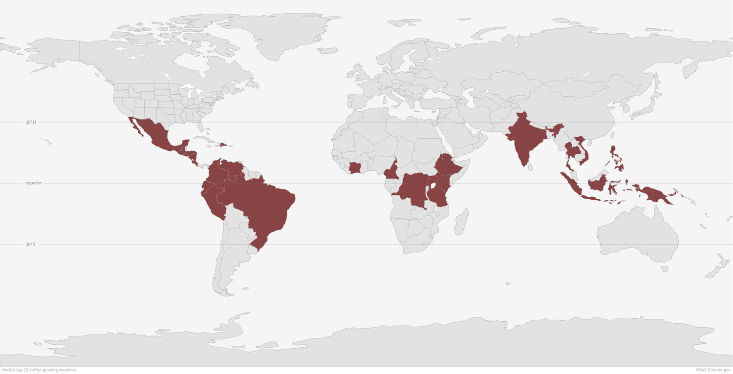 The Coffee Belt is divided into three main growing regions:Latin America, Africa and Asia / Pacific.